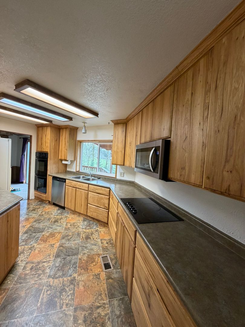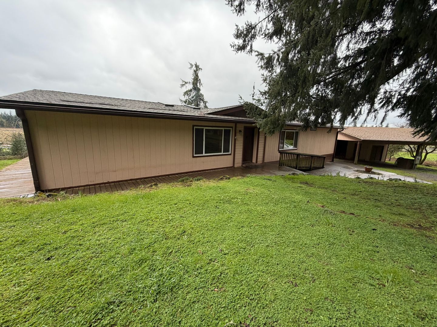 Welcome to this charming 3-bedroom, 2-bathroom home located in the picturesque town of Scio, OR. This home boasts a wood stove, perfect for cozy evenings, and a large porch that offers a scenic view of the surrounding landscape. The enclosed outdoor area provides a private space for activities, while the property's fruit trees add a touch of nature's bounty. Experience the perfect blend of comfort and beauty in this lovely home.